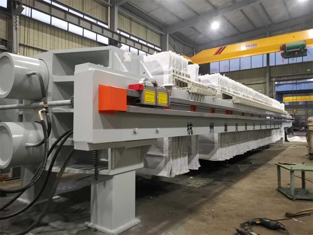 隔膜壓濾機和常規(guī)箱式壓濾機的主要區(qū)別在于,在濾板的兩側(cè)都增加了兩個彈性膜(復合橡膠膜是一個整體式膜。在操作期間,當進料完成時,將高壓流體介質(zhì)注入膜中,并使整個膜膨脹以過濾濾餅,以進一步使濾餅脫水,這是壓力過濾。在隔膜壓濾機運行期間,液壓系統(tǒng)使用液壓油作為壓力載體來傳遞內(nèi)部壓力。